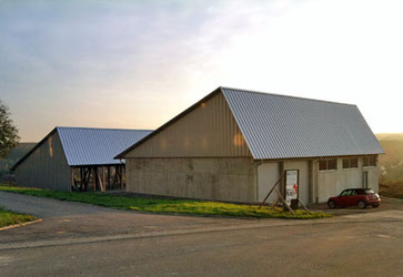Mit Unterstützung der Firma Mäckel Zimmerei aus Kraichtal-Landshausen stellte unser Zimmermann Frank Neubrand die Holzbaukonstruktion des hinteren Carports und das Dachgeschoss der Montagehalle.
