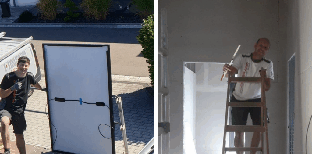 Fertig? Eigentlich ja nie. Aber das Gröbste ist geschafft. Die Hallen stehen, die Garagentore sind eingebaut. Die Photovoltaikanlagen produzieren Strom und die Montagehalle ist eingerichtet.